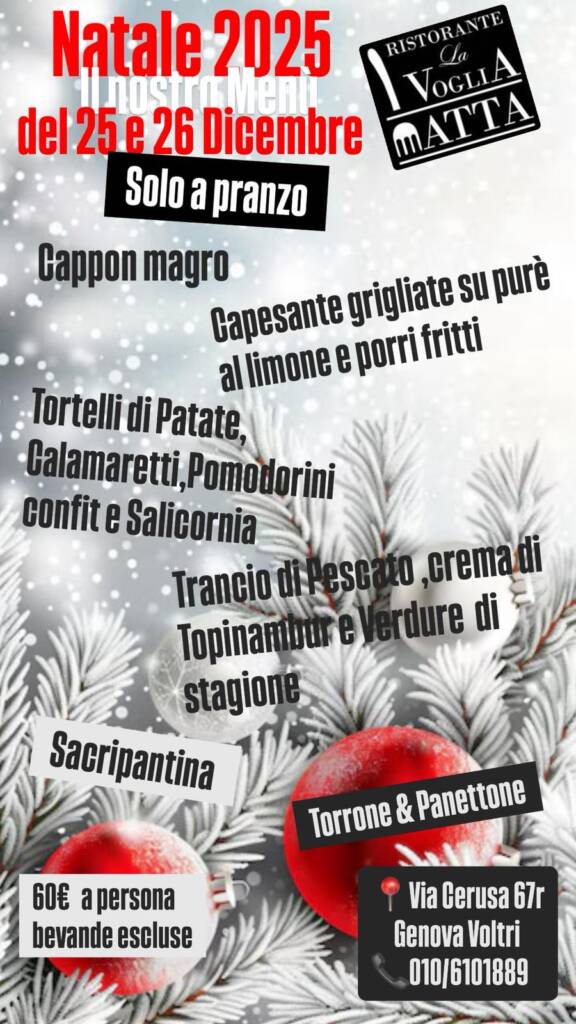 Un piatto ricco, fatto di verdure, pesce e quella salsa verde che profuma di basilico e di mare. Da La Voglia Matta viene preparato con attenzione ai dettagli, rispettando la ricetta della tradizione ma con una presentazione elegante, perfetta per aprire il pranzo di Natale con personalità.